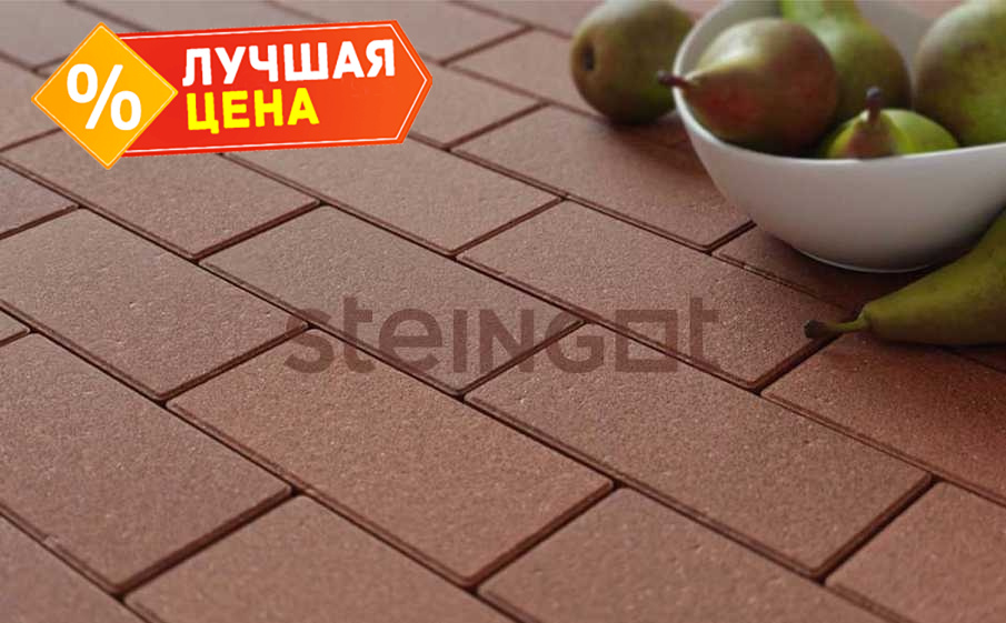 Плитка тротуарная Steingot Моно, Прямоугольник, фаска 1,5x1,5, коричневый, 200x100x60 мм